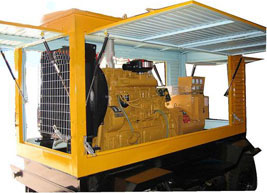 陈仓柴油发电机组/移动柴油发电机组设计独具创新,机动性高、重心低、制动安全、制造精良、外形美观。 陈仓拖车车架采用槽梁焊接成框架结构,节点选择合理、强度高、刚性好;同时装有钢板弹簧悬架结构;拖车采用高度可调节插销式牵引架,适用于各种高度牵引车;采用圆形钢管焊接直通式车轴,结构紧凑,安全可靠;车架四角设有机械式支撑装置,配备惯性行车制动、驻车制动和脱离应急制动,确保机组在各种状况下的安全;车架前端设有支撑轮,具备承受机组垂直载荷的功能的同时还具备导向功能;整车配备转向和刹车指示灯,同时装有尾灯标准插头